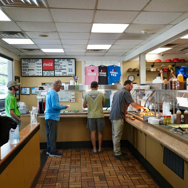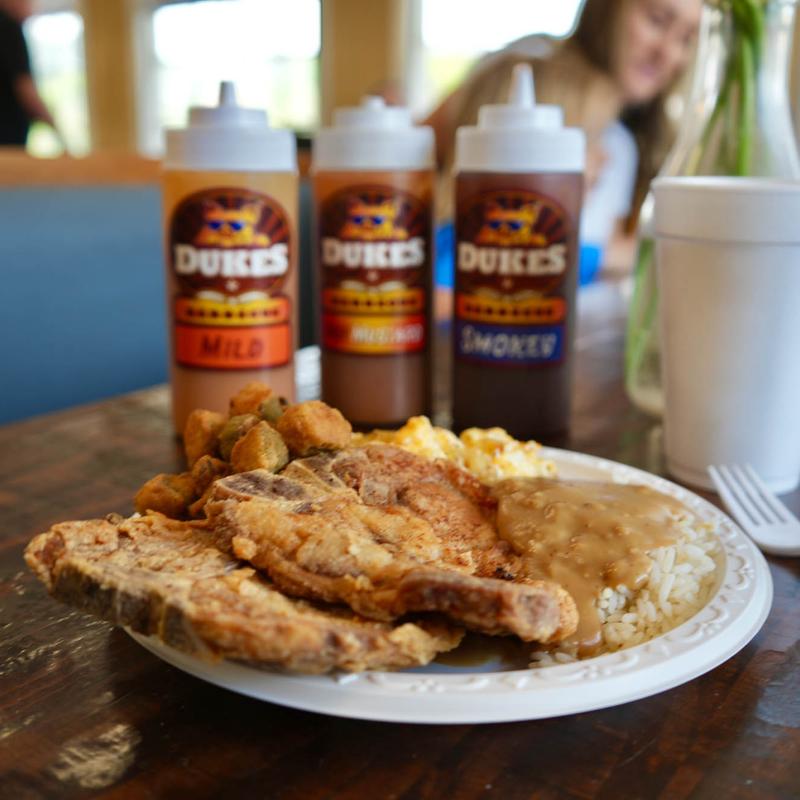 Dukes BBQ in Charleston brings together tradition and flavor in a family-friendly atmosphere. Our all-you-can-eat buffet highlights the best of Southern barbecue, featuring classic SC mustard-based BBQ, chopped pork, fried chicken, and a variety of delicious sides like mac ‘n cheese and collard greens. Rooted in the teachings of the original Dukes of Walterboro, we take pride in our authentic recipes and signature style. Experience the genuine taste of Lowcountry cooking at its finest.